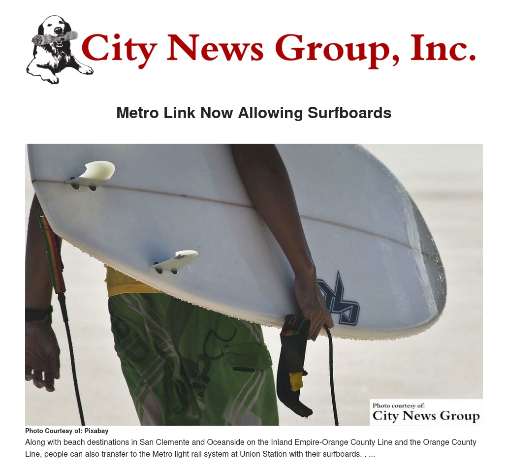 “This is a natural step for our service in making train travel a more convenient mode of transportation,” said Metrolink Board Chair and City of San Jacinto Council Member Andrew Kotyuk. “People have consistently taken our trains to the beach, while avoiding the congested freeways. We are excited that surfers will now have that option, too.”