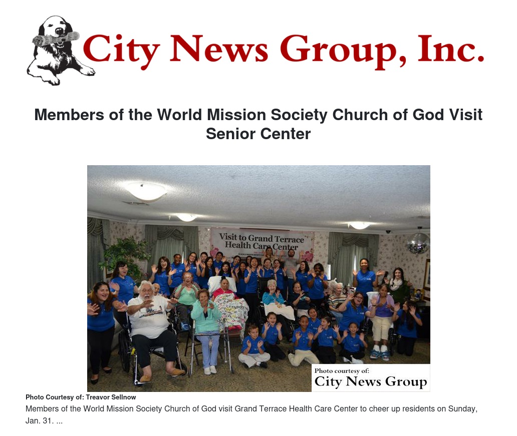 Thirty members of the World Mission Society Church of God decided to start the New Year off right by paying a visit to the Grand Terrace Healthcare Center on Jan. 31.