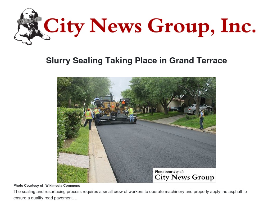 Slurry Sealing Taking Place in Grand Terrace by Sergio Mendez - City News Group, Inc.
