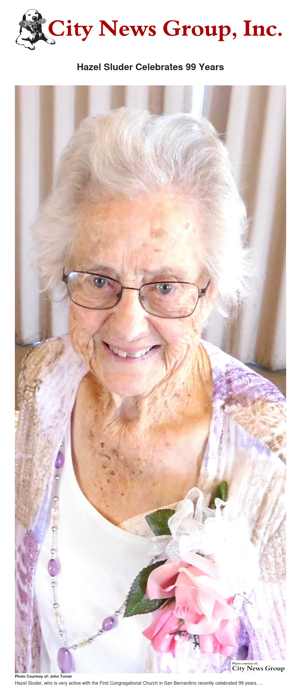 Hazel has enjoyed being a part of the First Congregational Church in San Bernardino, and has many friends there.