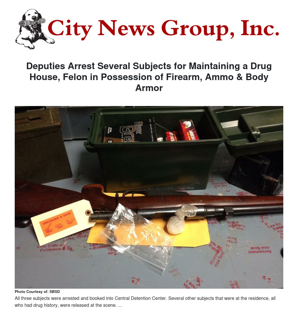 Deputies Arrest Several Subjects for Maintaining a Drug House, Felon in Possession of Firearm, Ammo & Body Armor by SBSD - City News Group, Inc.