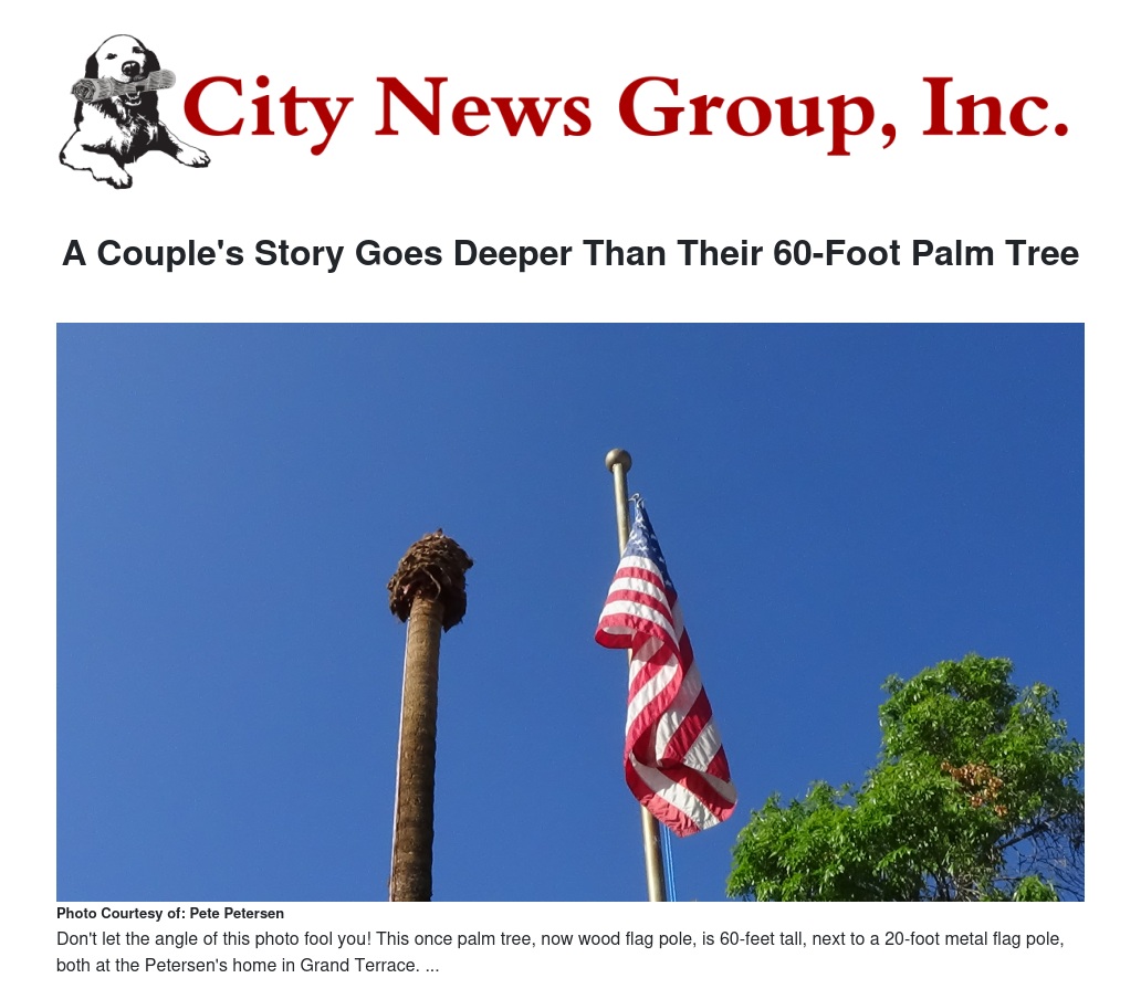 When they first moved to the community, Pete shares that the palm tree in their front yard was about 20 feet tall, the same height as a their flag pole near their mail box. Later that tree grew to a whopping 60 feet, holding the title as the tallest palm tree in Grand Terrace, according to Pete.
