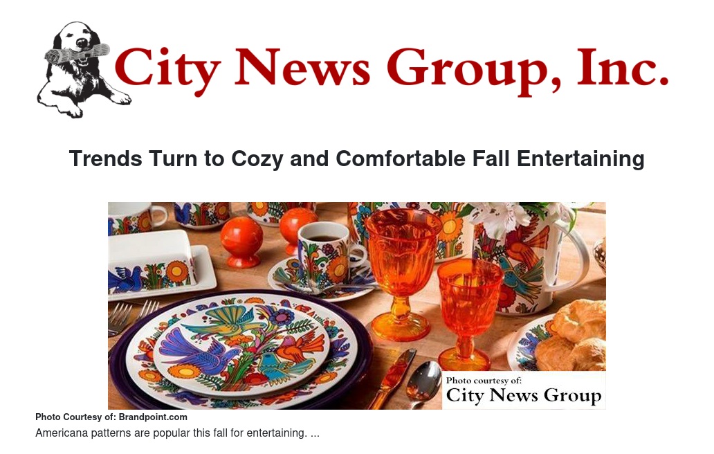 As home decor changes with fall trends, so is the way many entertain. Gatherings lean toward relaxed, cozy evenings making memories with friends and family; a respite before the upcoming busy holiday season.