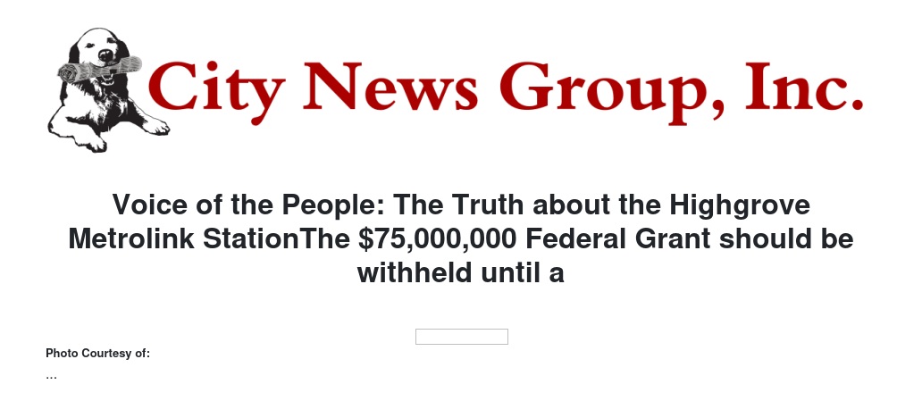 Voice of the People: The Truth about the Highgrove Metrolink StationThe $75,000,000 Federal Grant should be withheld until a