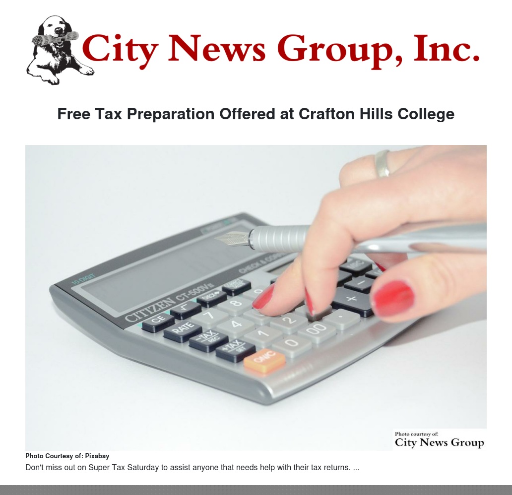 On Saturday, March 12, the college will host Super Tax Saturday. The special event is sponsored by the California State Board of Equalization and is the only such event being held in San Bernardino County. Additional volunteers will be on hand that day to assist taxpayers with their returns.