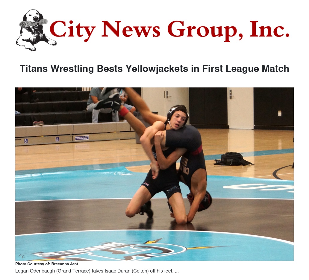 The Titans walked away with a 53-24 final tally in the Grand Terrace-hosted meet Jan. 16, which saw a lively vocal crowd cheering on both sides. The win will help the Titans in their next meet against defending CIF champs, Fontana High School Steelers, tonight, Jan. 23.