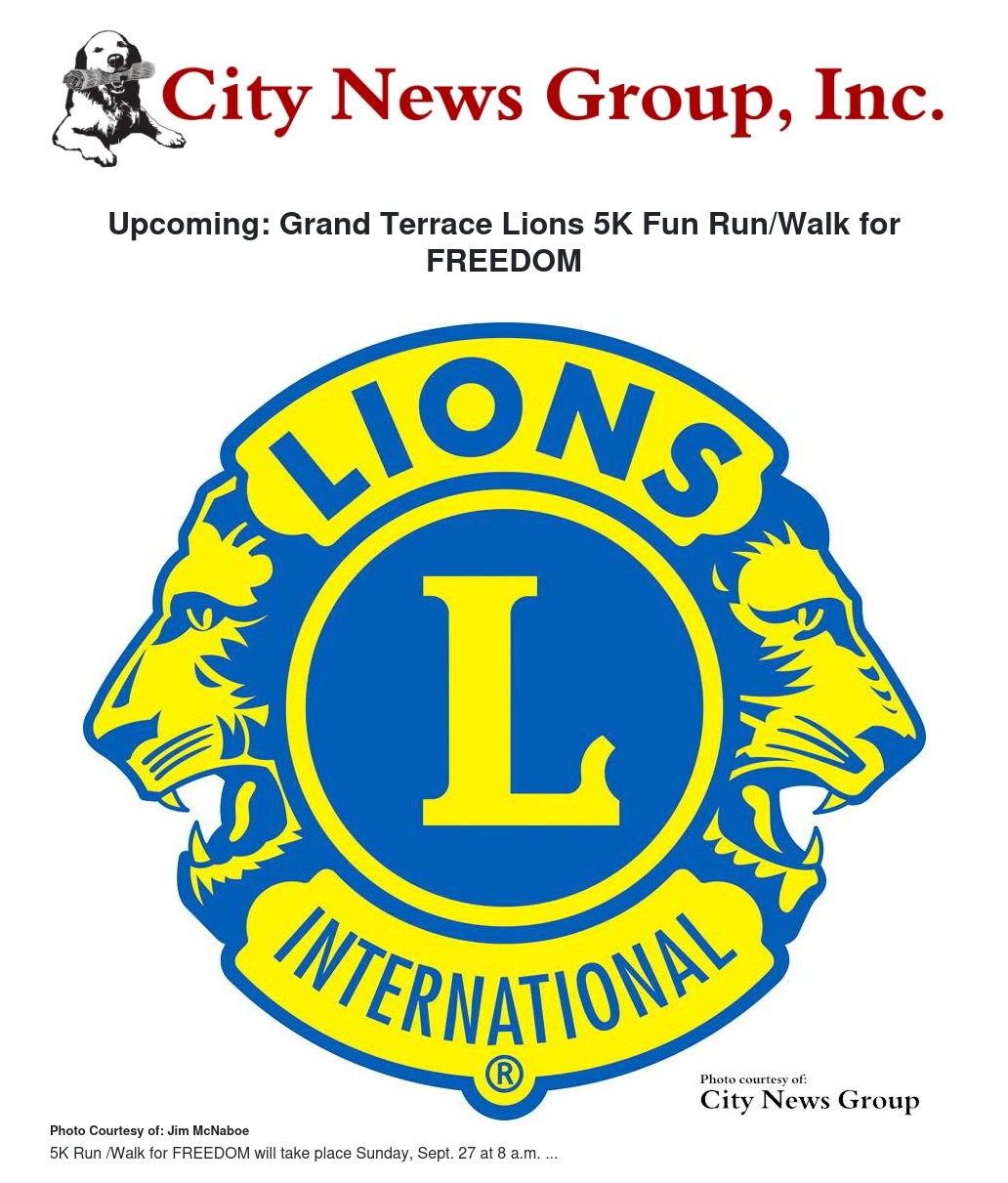 The Second Annual Grand Terrace Lions 5K fun Run/Walk for FREEDOM will take place on Sunday, Sept. 27 at 8 a.m. at Pico Park in Grand Terrace.