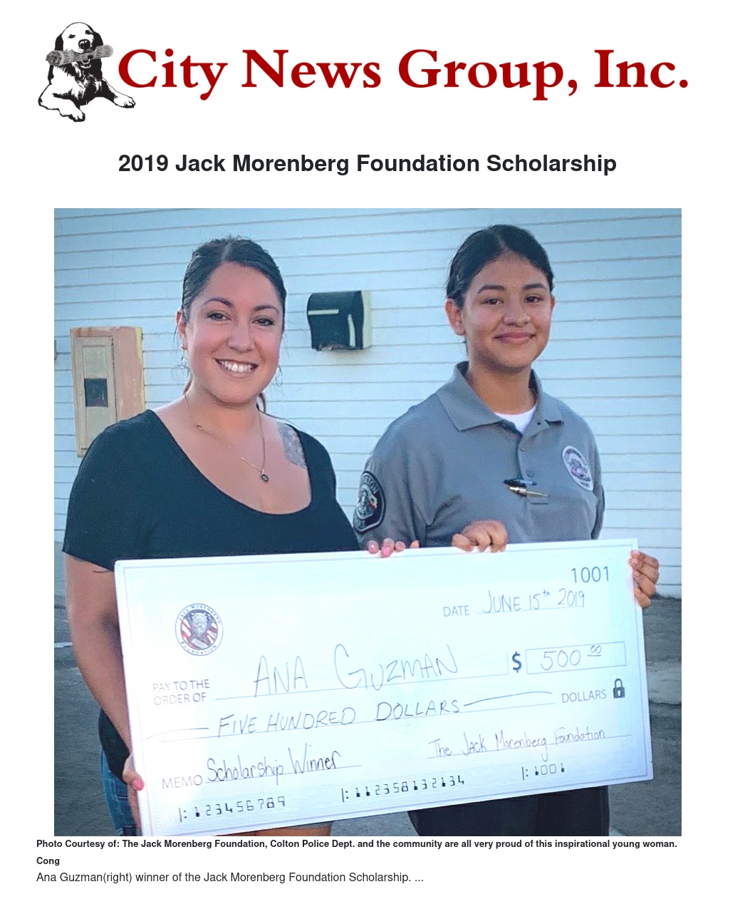 The Jack Morenberg Foundation, Colton Police Dept. and the community are all very proud of this inspirational young woman.