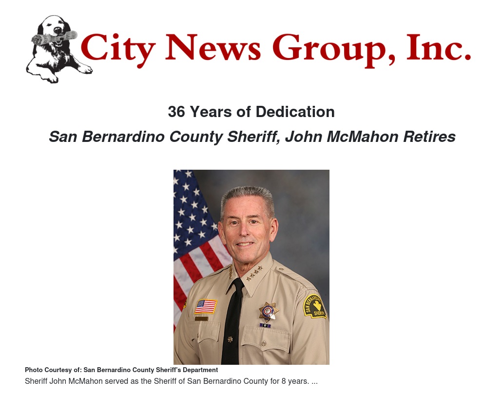 After dedicating 36 years of service, Sheriff John McMahon said farewell to the San Bernardino County Sheriff’s Department as he entered into retirement on July 16th. The announcement came on Friday, June 18th from McMahon that after more than eight years as Sheriff and years of service, he would retire.