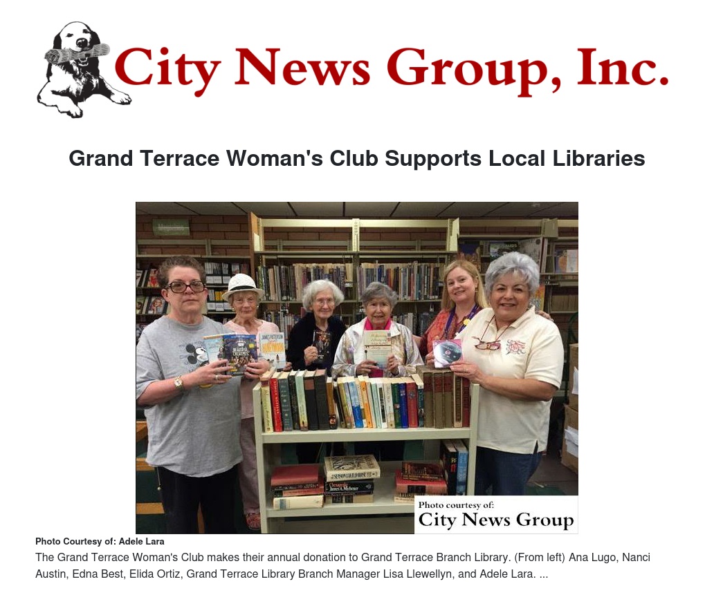 Grand Terrace Woman's Club Supports Local Libraries