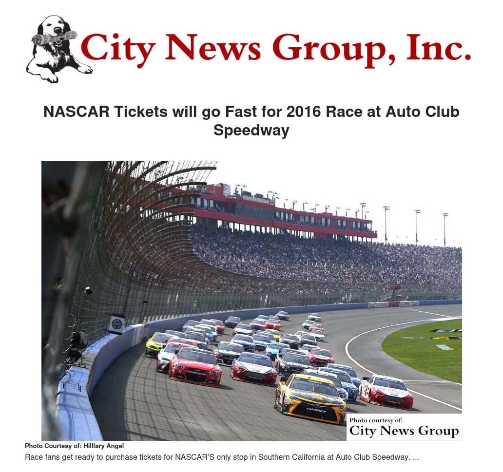 NASCAR Tickets will go Fast for 2016 Race at Auto Club Speedway