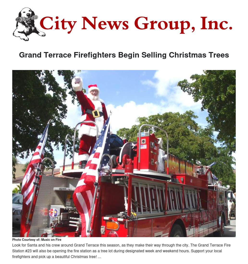 On Nov. 30, during what has become a community tradition, Grand Terrace firefighters will begin their annual Christmas Tree sale at 9 a.m. .