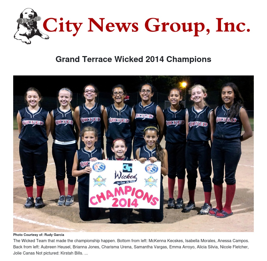 The Grand Terrace Major Division Softball team, Wicked, is 2014 Champions.