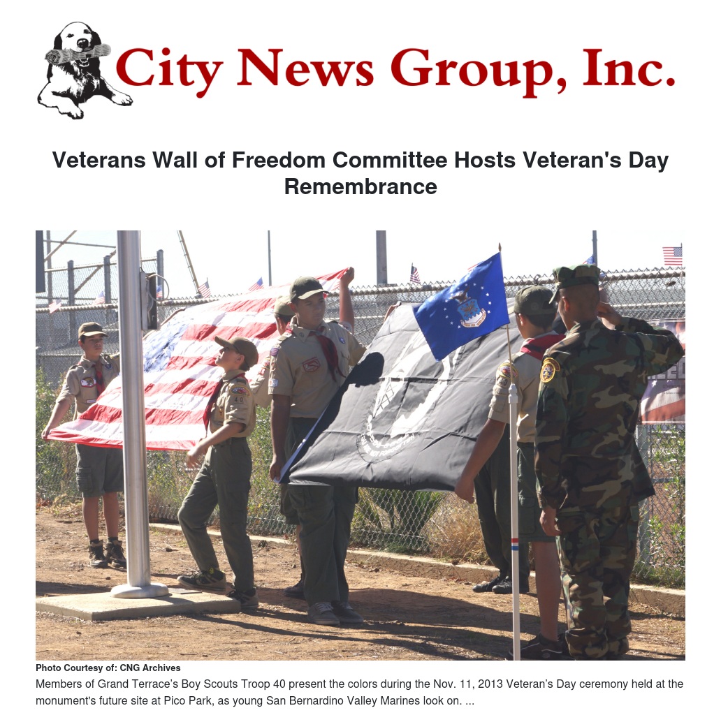 The future Veterans Wall of Freedom in Grand Terrace's Pico Park was the home site of this year's Veterans Day remembrance ceremony, held at 11 a.m. Monday morning, Nov. 11 - Veteran's Day.