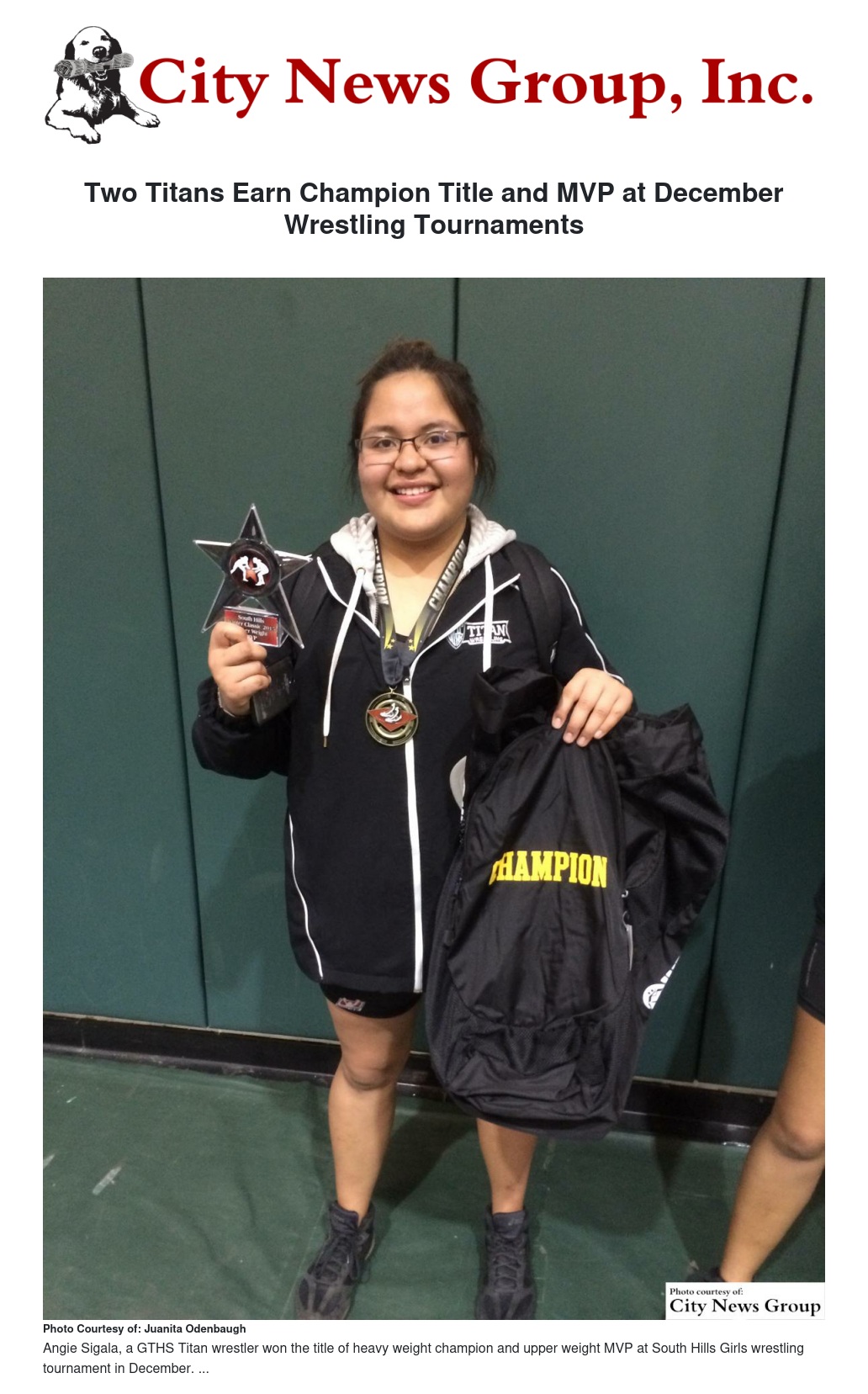 Senior wrestler Angie Sigala also won the heavy weight champion title and upper weight MVP but at the South Hills Girls wrestling tournament on Dec. 21.