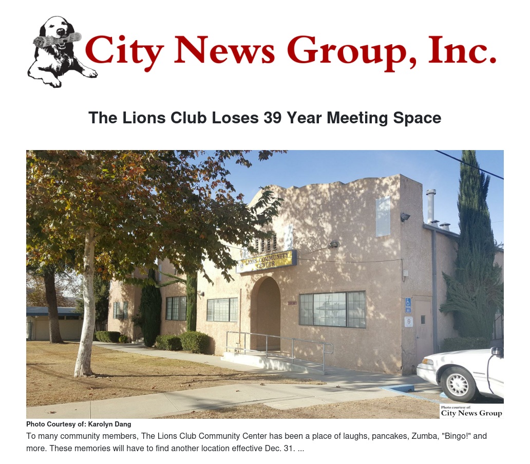 The Grand Terrace Lions Club has been told it has to move from The Lions Club Community Center, a location it has occupied for 39 years. The community center is the property of the Colton Joint Unified School District (CJUSD), who has issued a directive to vacate the property by Dec. 31.