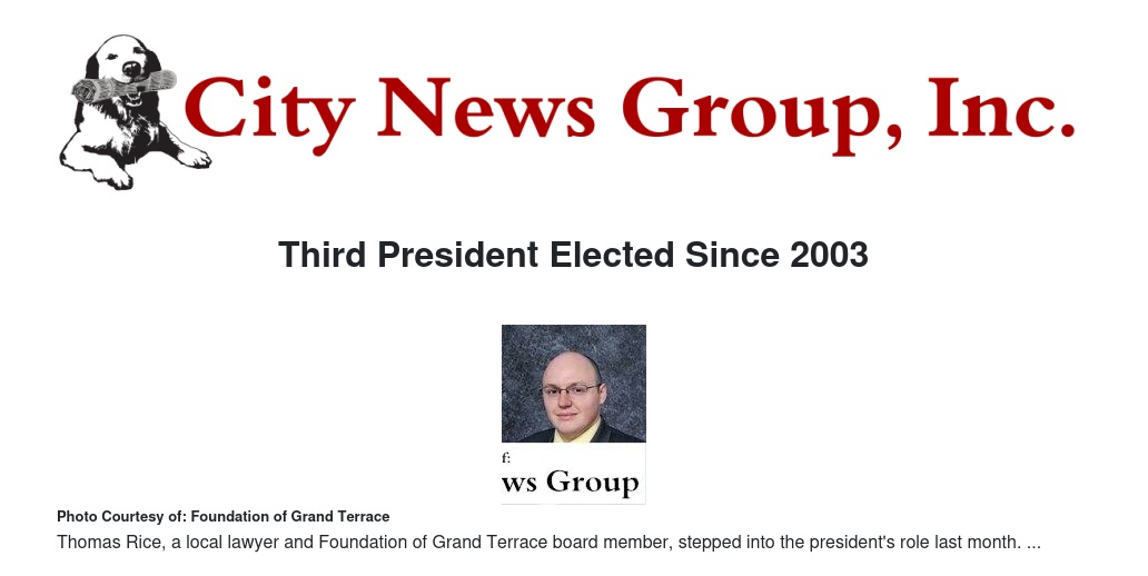 Thomas Rice, a local resident and attorney with the law firm Best Best & Krieger LLP, will fulfill the role of President effective immediately.