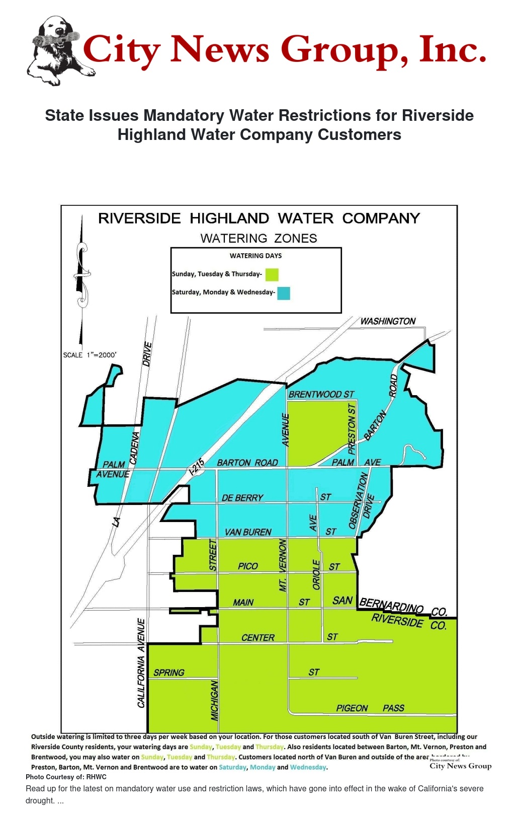 State Issues Mandatory Water Restrictions for Riverside Highland Water Company Customers