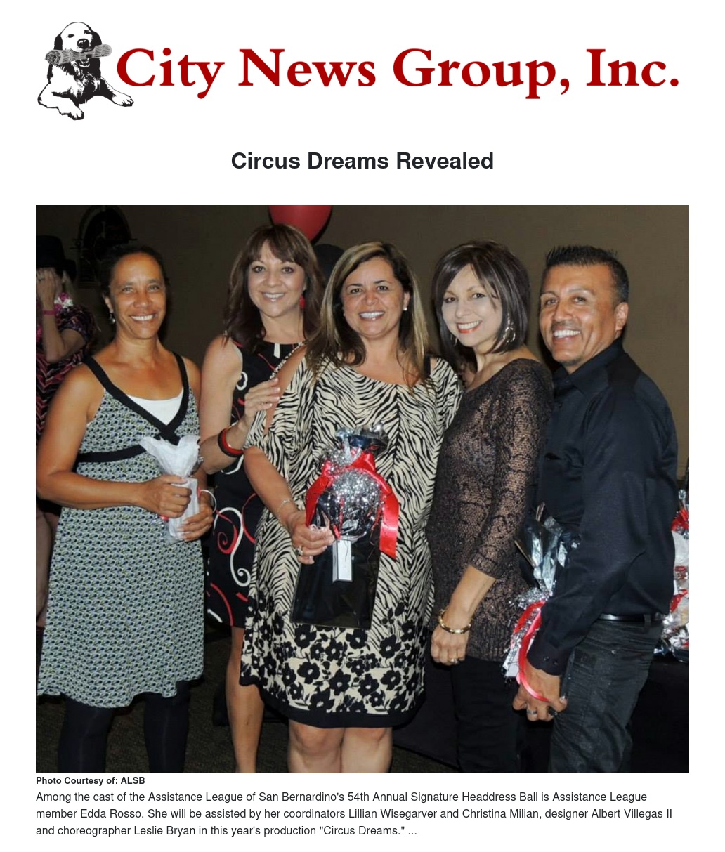 The Assistance League of San Bernardino announced Monday night the theme of their 54th Annual Signature Headdress Ball, “Circus Dreams”. The annual event will be held at the National Orange Show in San Bernardino on Saturday, April 25, 2015.