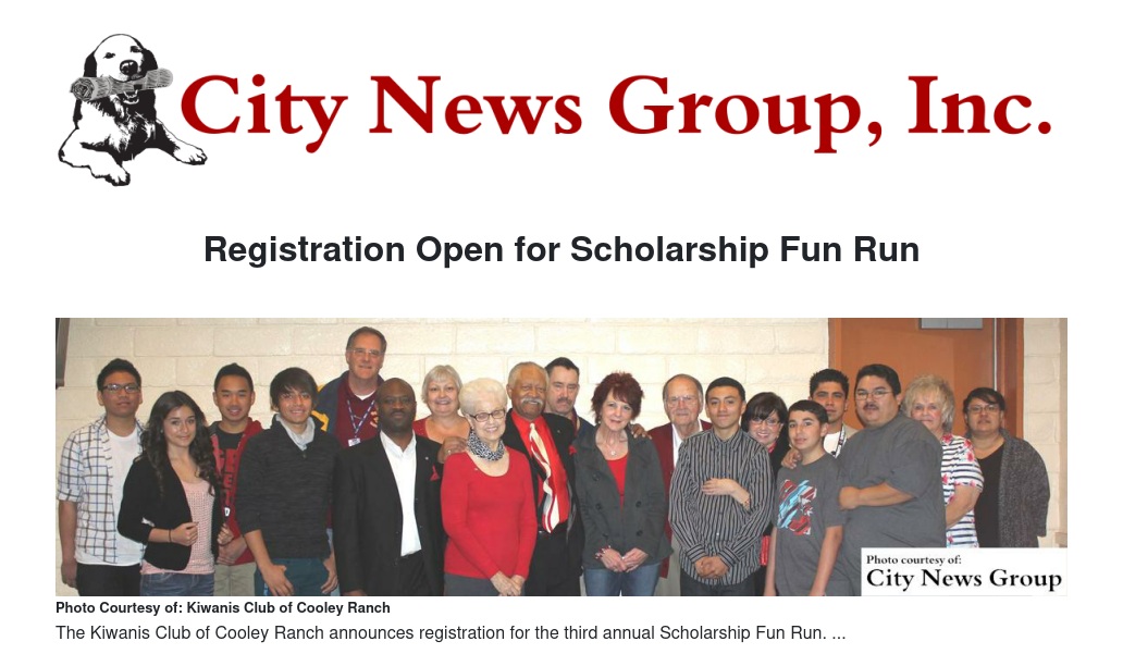 Presented by the Kiwanis Club of Cooley Ranch, the 5K run event is slated for Sunday, March 15, and will kick off at 8 a.m. The total 3.1-mile course will begin and end in front of Cooley Ranch Elementary School, 1000 S. Cooley Drive East in Colton.