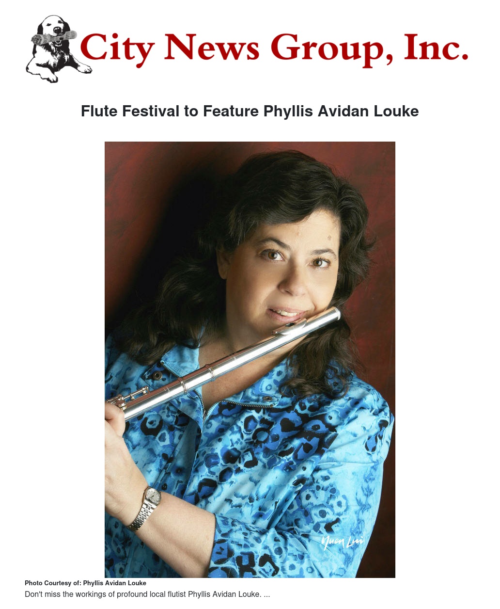 Flute Festival to Feature Phyllis Avidan Louke