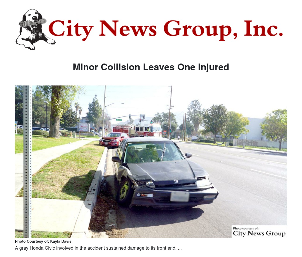 San Bernardino County Sheriff's deputies and San Bernardino County fire personnel responded to the crash involving a red Nissan Altima and a gray Honda Civic that afternoon. Capt. Jon Garber of San Bernardino County Fire explained the collision may have occurred after the Honda, containing a single driver, made a turn into a nearby parking lot, possibly in front of the red Nissan, containing a driver and passenger.