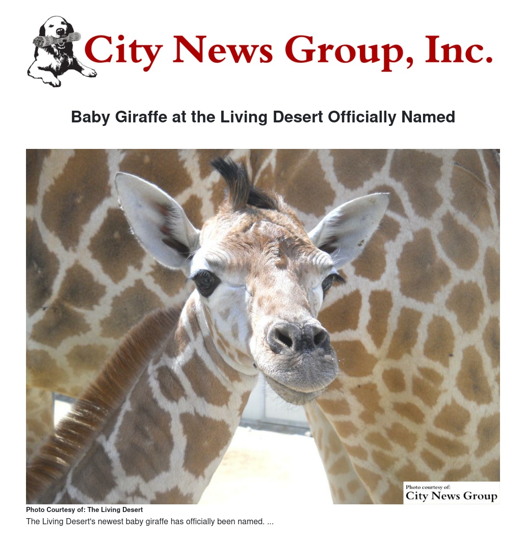 Baby Giraffe at the Living Desert Officially Named