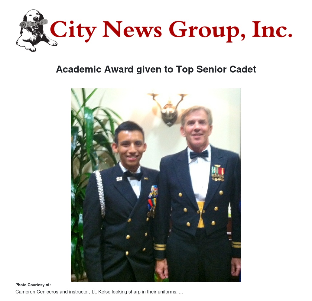The stringent requirements for a nomination for this award eliminate 90 percent of all cadets in the national program. The award reflects the selection as the top senior cadet in NJROTC area 11, which encompasses 56 high schools and approximately 7000 cadets.