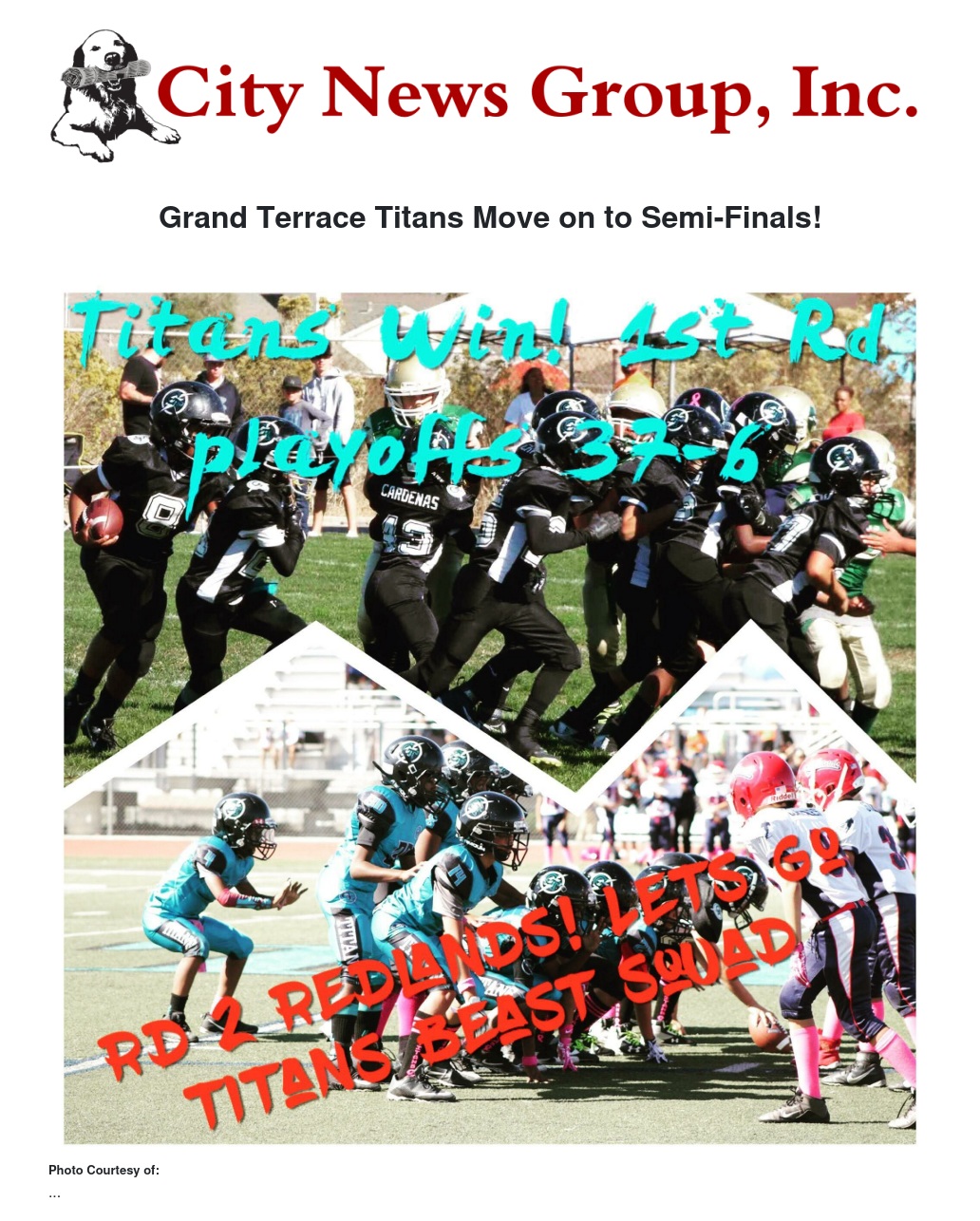 Titans are headed to the Semi Final Playoffs after defeating the San Bernardino Cowboys 36-7. Grand Terrace Titans JAAFC perfect accomplished a perfect season going 7-0. and Scoring 208 points on offense and the defense giving up 0 points to their opponents.