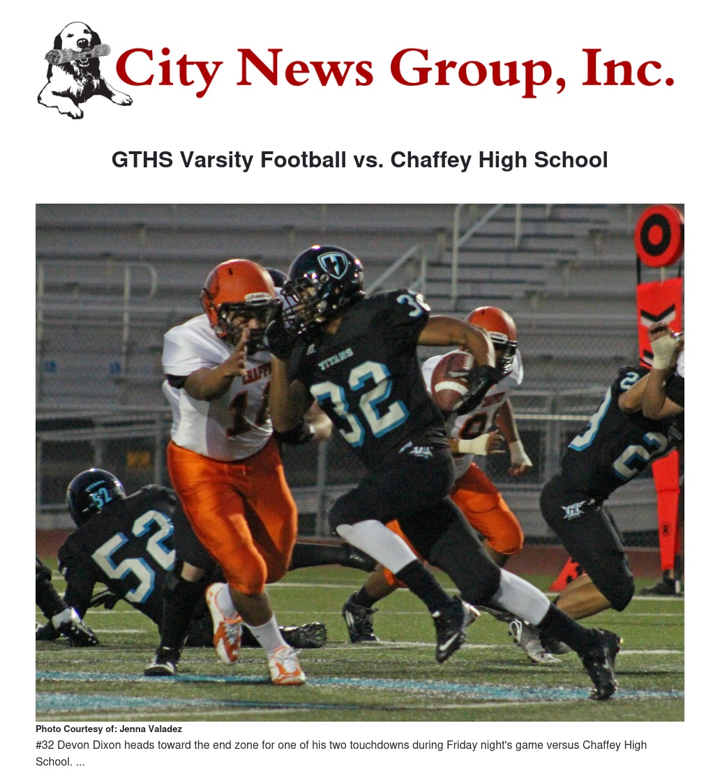 Next week both Freshmen and JV have a bye (No games). Our Varsity Titans play host to out of State Team Colorado’s Cherry Creek High School. This will be a very tough game against one of Colorado finest teams, kickoff is at 7 p.m. at GTHS Titans Stadium.