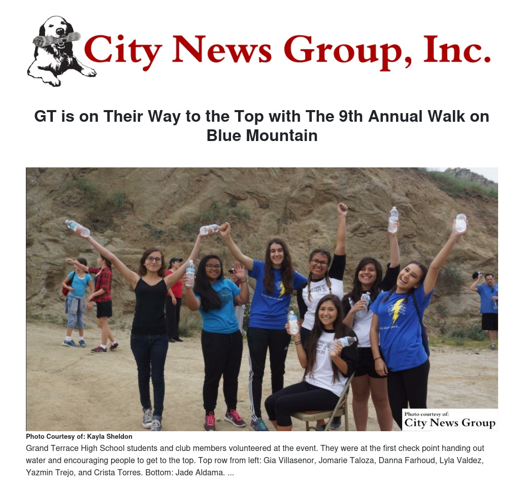 Throughout the hike, there were various checkpoints that offered water and a quick break before continuing the steep hills. As one passed the first check point, a group of Grand Terrace High School (GTHS) students cheered the hikers on, motivating them to keep going while passing out water bottles. The group was volunteering at the event, as they were from various clubs at GTHS including Interact Club, National Honors Society, and more. The students’ positivity was contagious as it kept everyone moving up the mountain.