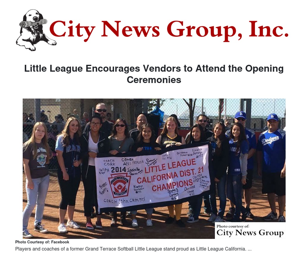 GRAND TERRACE>> With a long tradition of little league sports, the Grand Terrace Little League Opening Ceremonies are set for Saturday, March 25 at Veterans Freedom Park and the league is looking for vendors to help celebrate the ceremony.