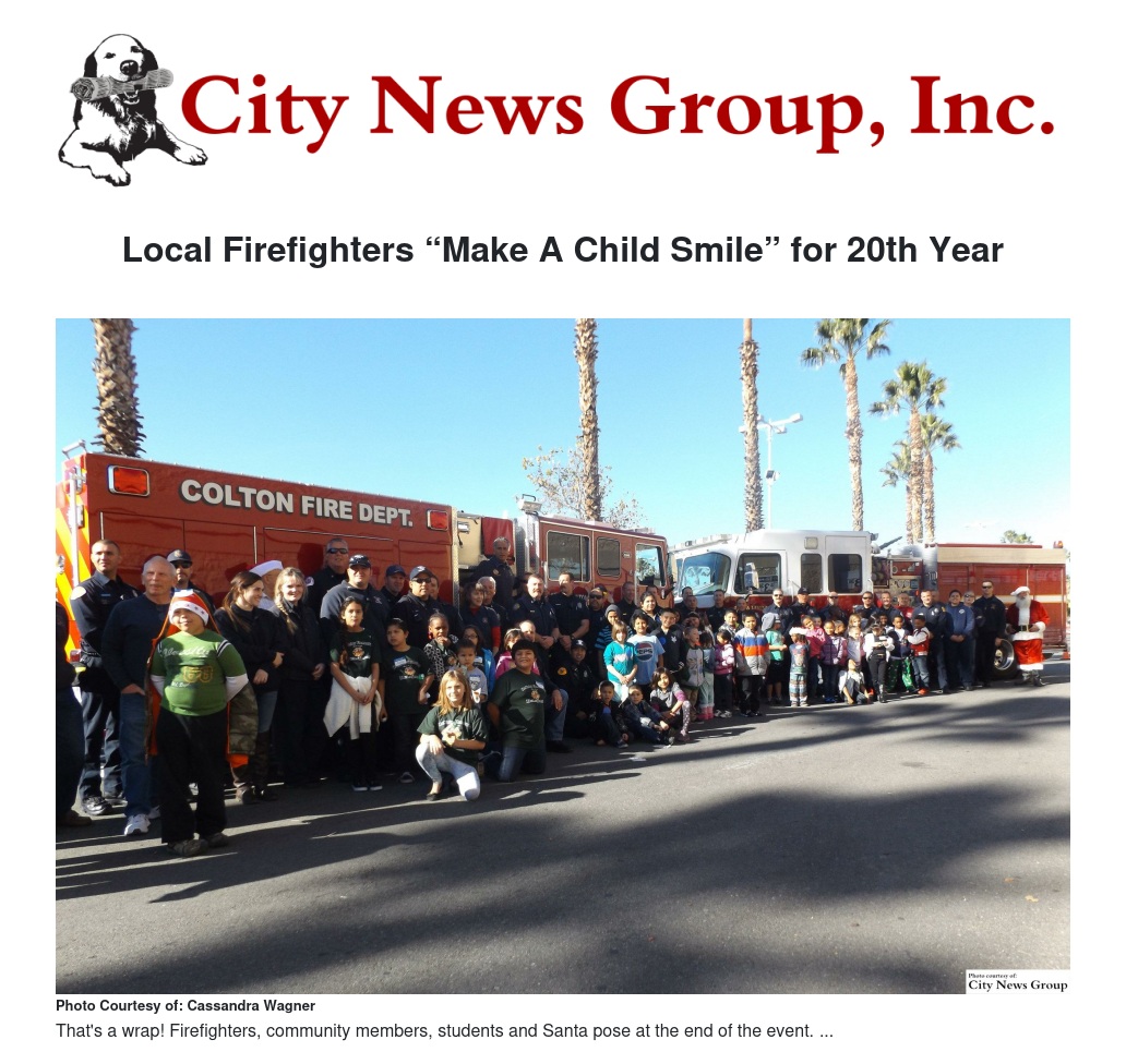 On Thursday, Dec. 17, 50 students from the Colton Joint Unified School District (CJUSD) were escorted from Fire Station 211 by Colton firefighters to the local Wal-Mart. The students arrived by bus surrounded by the blare and lights of fire-trucks. Their arrival marked the beginnings of a holiday tradition.