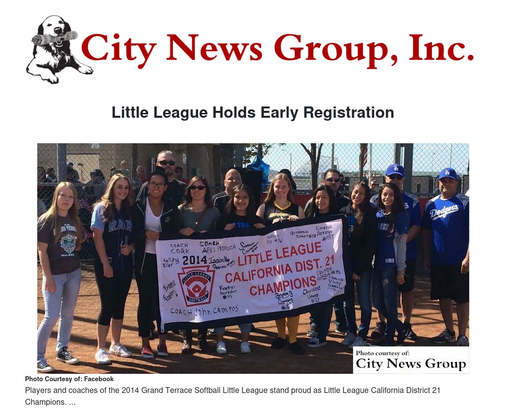 Grand Terrace Little League welcomes athletes from the areas of Grand Terrace, Cooley Ranch, Reche Canyon, Highgrove and Loma Linda.