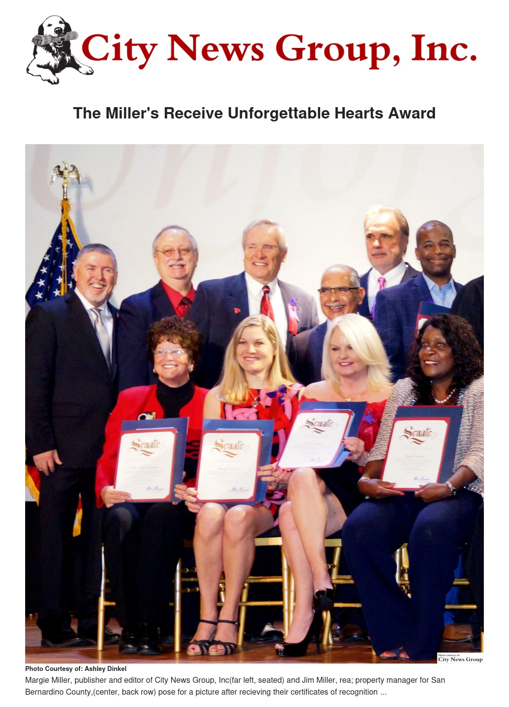 Among the many award recipients were Margie and Jim Miller of Grand Terrace. Margie Miller sits on the board of Unforgettables Foundation and is the current publisher and editor of City News Group, Inc. Her husband, Jim Miller, is the Real Property Manager for the entire county of San Bernardino. The Millers were presented with a certificate and commemorative plaque from Senator Mike Morrell, along with San Bernardino County Board of Supervisors Connie Leyva and Assembly Member Eloise Reyes for their work with The Unforgettables Foundation.