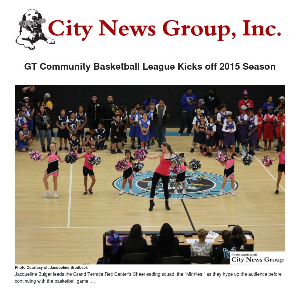 Also, special guests, 4 to 9 year-old cheerleading group, the “Minnies,” from the Grand Terrace Rec Center, took the court to perform a routine lead by Bulger.