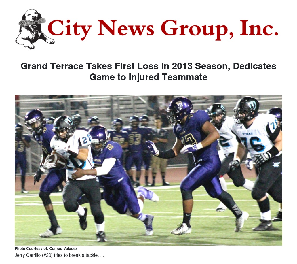 Grand Terrace Takes First Loss in 2013 Season, Dedicates Game to Injured Teammate