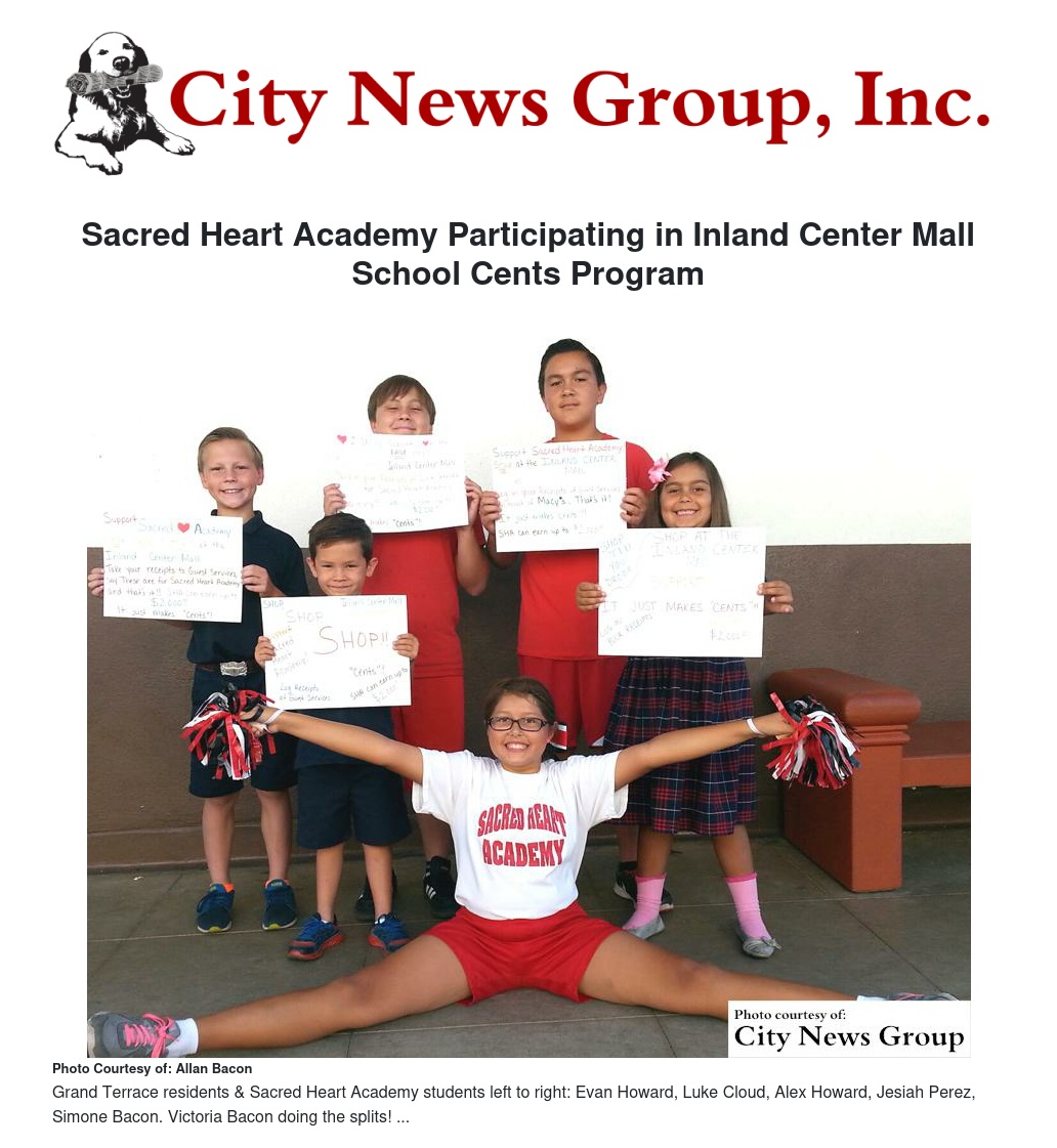 Sacred Heart Academy (SHA) in Redlands is participating in the Inland Center Mall’s School Cents Program. Each year 20 local schools get selected to participate in the program and for the first time, SHA has been selected. The School Cents Program is a fun and easy fundraiser. Each participating school competes for points, that in turn, helps the school earn from $250-$2000.
