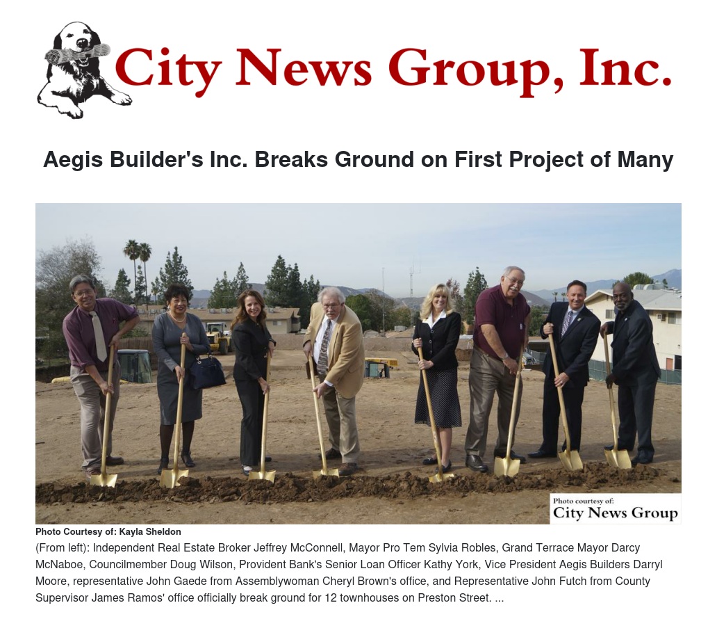 A few weeks prior to the groundbreaking, Aegis Builders Inc. celebrated the grand opening of their brand new Grand Terrace office, located on Barton Road.