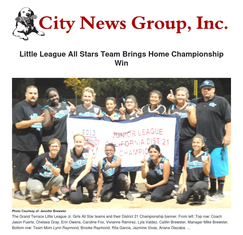 The Grand Terrace Little League Girls Jr. Softball All Star team brought home the banner after nabbing the title of District 21 Champions this year.