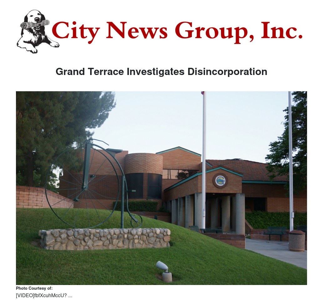 Kathleen said, Revenues at that time for the city werent sufficient for the long term. Also, another concern was that the city couldnt expand its boundaries any longer. What you have is what you can generate your income from. In the early 2000s, an initiative was put before the residents of Grand Terrace, giving citizens the opportunity to vote for a utility tax. It was strongly defeated. At present, introducing a new utility tax measure is a consideration being weighed by the budget advisory committee and City Council. Kathleen emphasized that disincorporation is a process with serious consequences. The city needs to look at this possible choice with diligence. Disincorporation does nothing for your debt or existing contracts, says Kathleen, Claiming bankruptcy (as the City of San Bernardino did) is the only way to negotiate the amount of your debt and reduce your contract obligations. The debt of the city going through disincorporation must be borne by the property owners in that city.