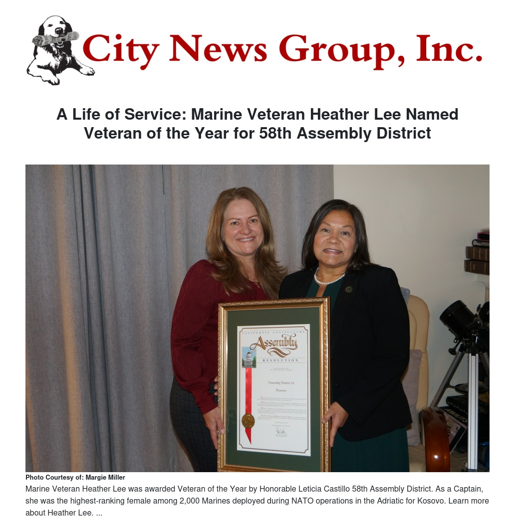 A Life of Service: Marine Veteran Heather Lee Named Veteran of the Year for 58th Assembly District by Margie Miller - City News Group, Inc.