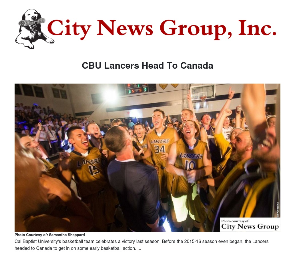 Although the basketball season is still months away, California Baptist University is getting in on some early action on foreign soil. The recently Lancers headed to Canada for a four-game tour, hoping to break in a new 2015-16 squad before school even starts in September.