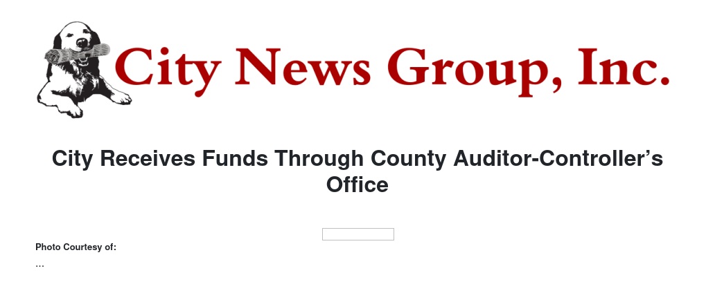 City Receives Funds Through County Auditor-Controller’s Office