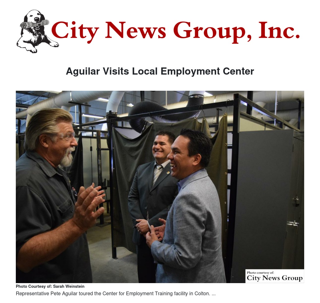 “I’m grateful for the opportunity to tour the Center for Employment Training facility and to see firsthand how these critical programs are preparing Inland Empire residents for the 21st century economy,” said Aguilar. He continued, “It’s so encouraging to see the devotion of the instructors and administrators in seeing their students succeed—we need more programs like this in San Bernardino County.”