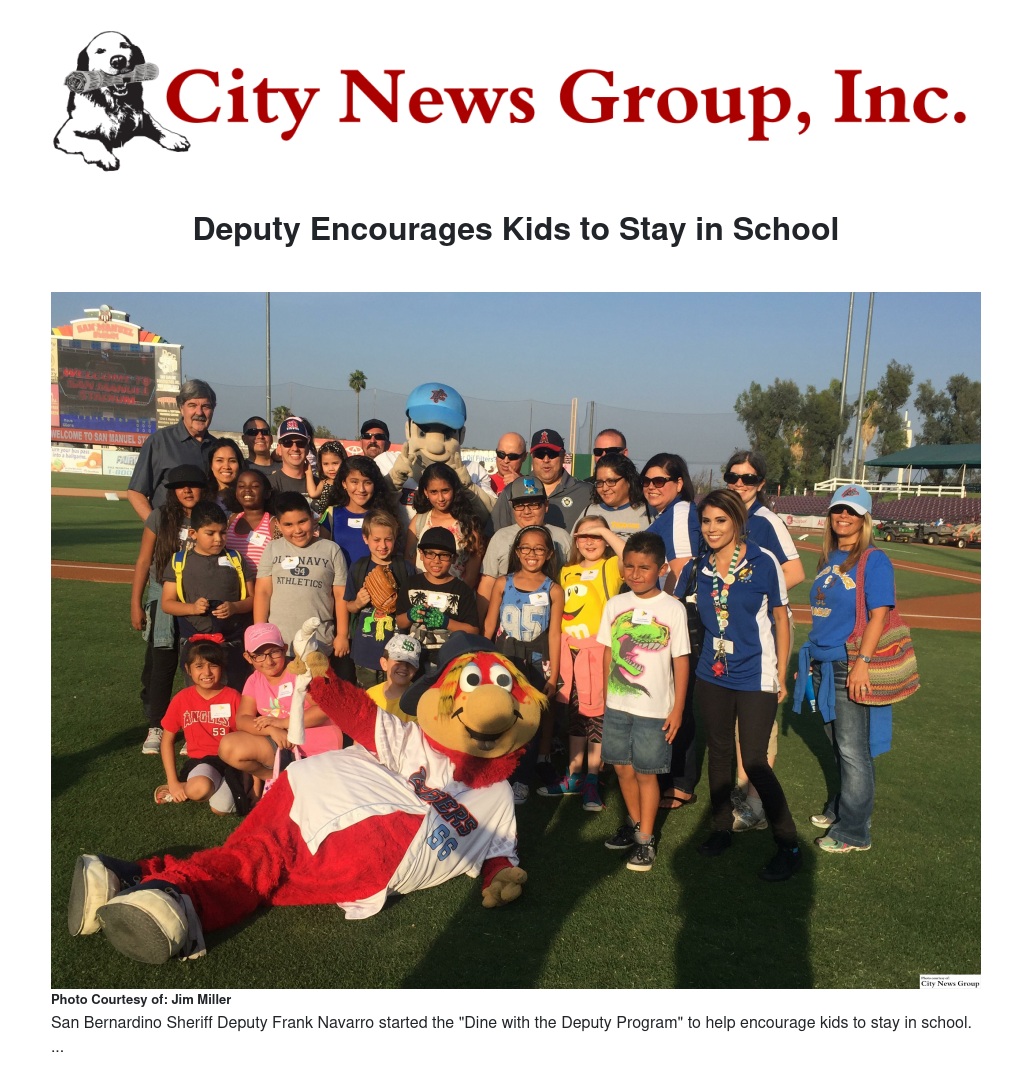 A program established by San Bernardino Sheriff Deputy Frank Navarro Jr. provides that experience to grade school students. The program called “Dine with Deputy Program” was initiated by Navarro when he was a resource officer in the City of Yucaipa.