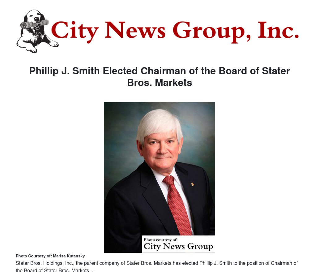 Phillip J. Smith Elected Chairman of the Board of Stater Bros. Markets