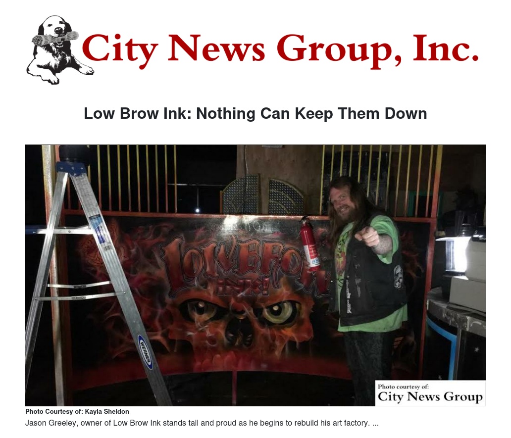 Although the damages are estimated to be over $200,000, according to Greeley, Low Brow Ink is looking forward to a cathartic journey from here on out.