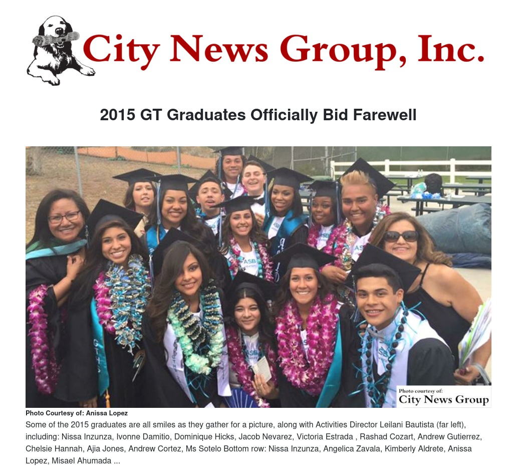 The Grand Terrace Senior Center gives a big thank you to Elvira and Frank Valenzuela, who called to see if the Grand Terrace Senior Center needed volunteers and came to work alongside the students.