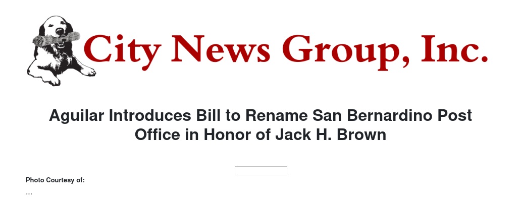 On June 29th, Rep. Pete Aguilar, who represents California's 31st Congressional District (D-San Bernardino), announced the introduction of H.R. 2979, a bill to name the United States Post Office located at 390 West 5th Street in San Bernardino after Jack H. Brown. The post office name would be changed to the “Jack H. Brown Post Office Building” in honor of Jack H. Brown, the late Executive Chairman of the regional grocery chain Stater Bros. Markets and an impassioned Inland Empire philanthropist.